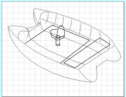 Rough Drawing of catamaran-like fishing boat
