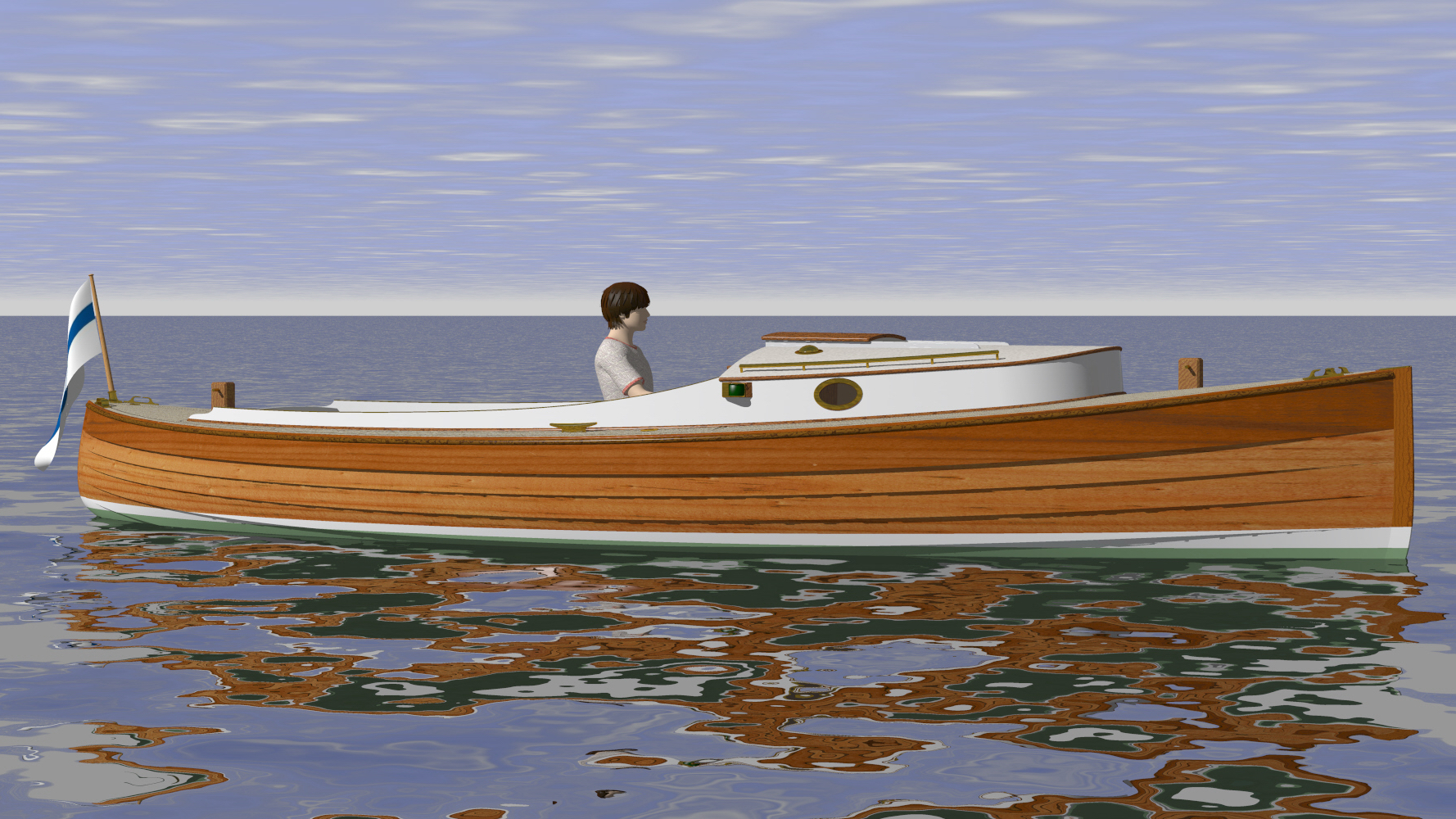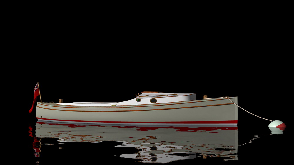 Looks cool, especially the hull and boarding walk through transom. What kind of power plant and power are you thinking of?
