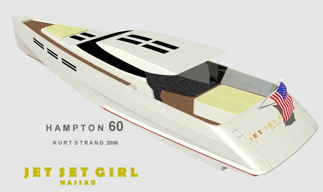 Looks cool, especially the hull and boarding walk through transom. What kind of power plant and power are you thinking of?