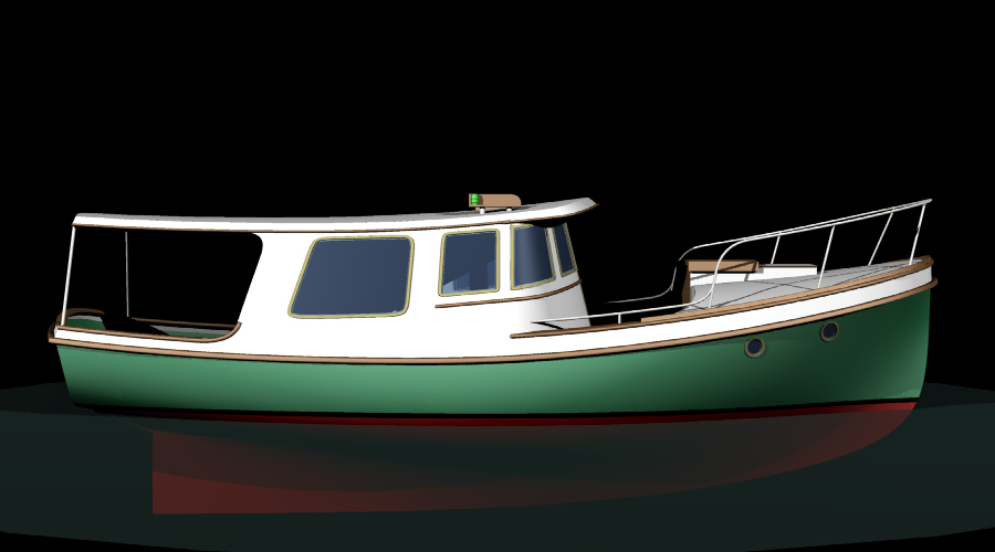 Looks cool, especially the hull and boarding walk through transom. What kind of power plant and power are you thinking of?