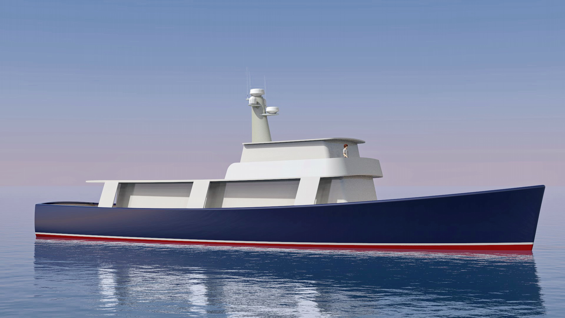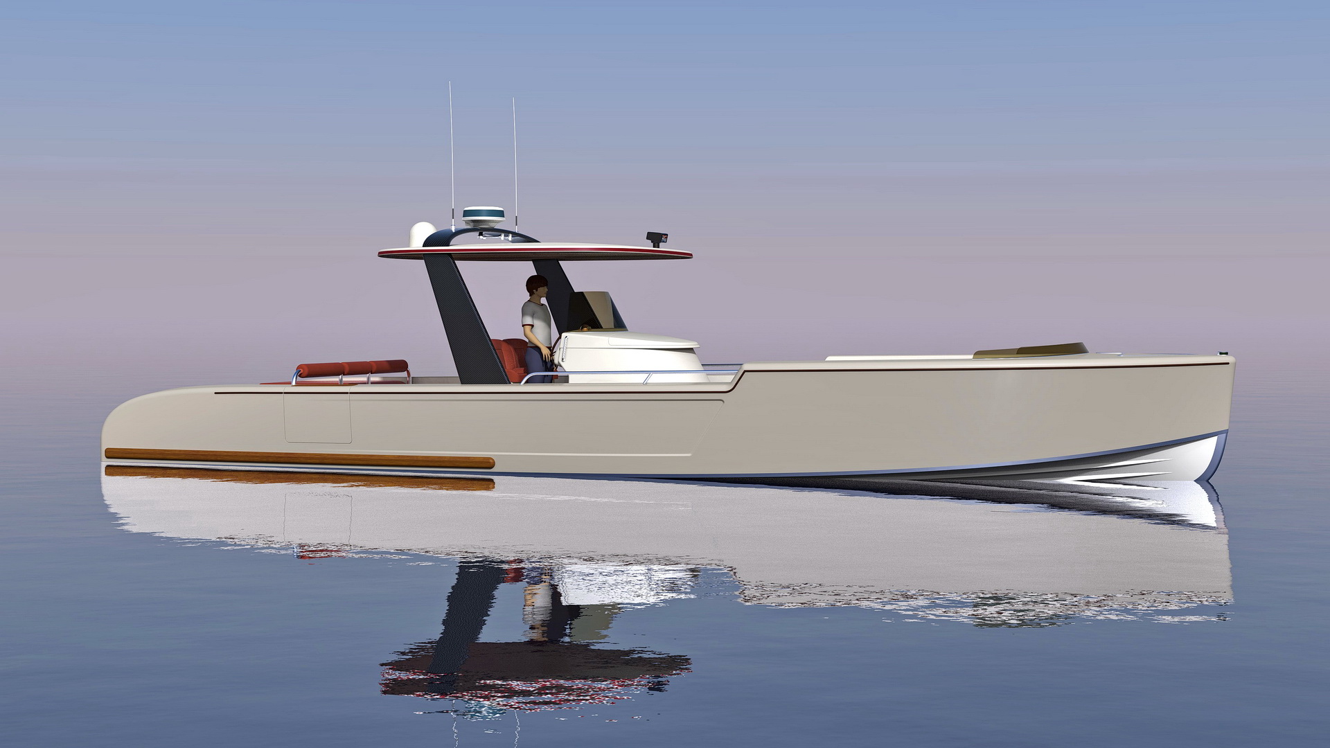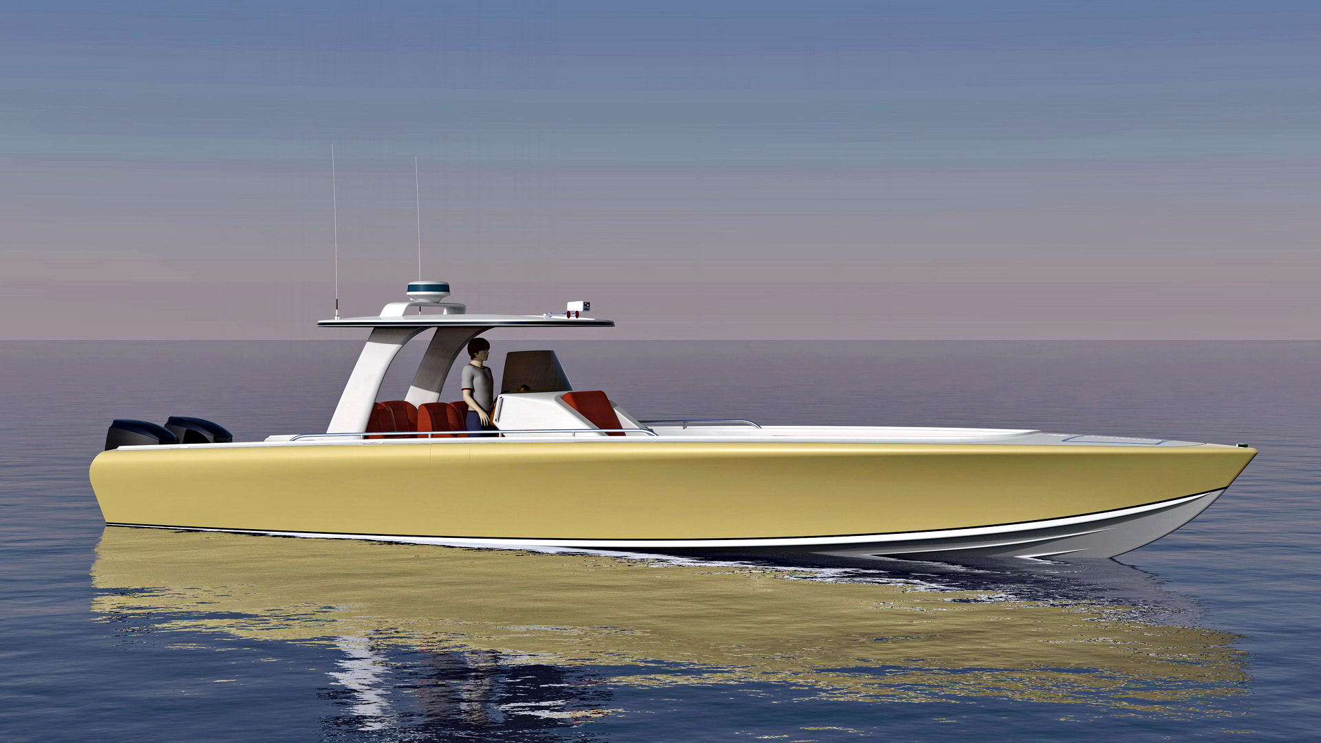 Looks cool, especially the hull and boarding walk through transom. What kind of power plant and power are you thinking of?