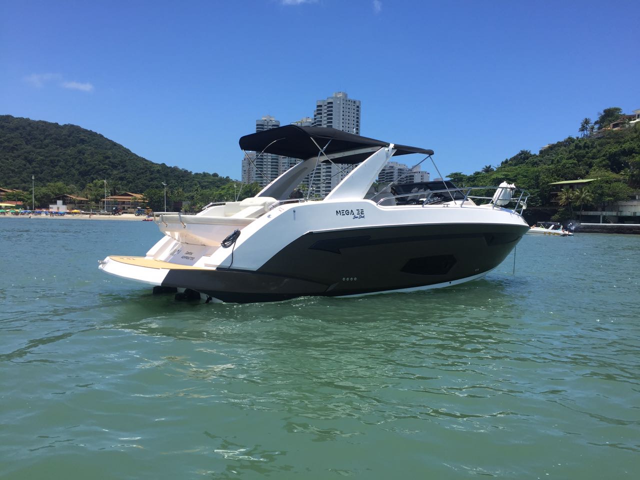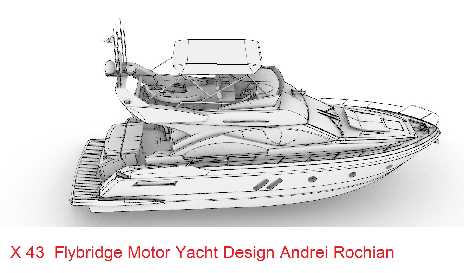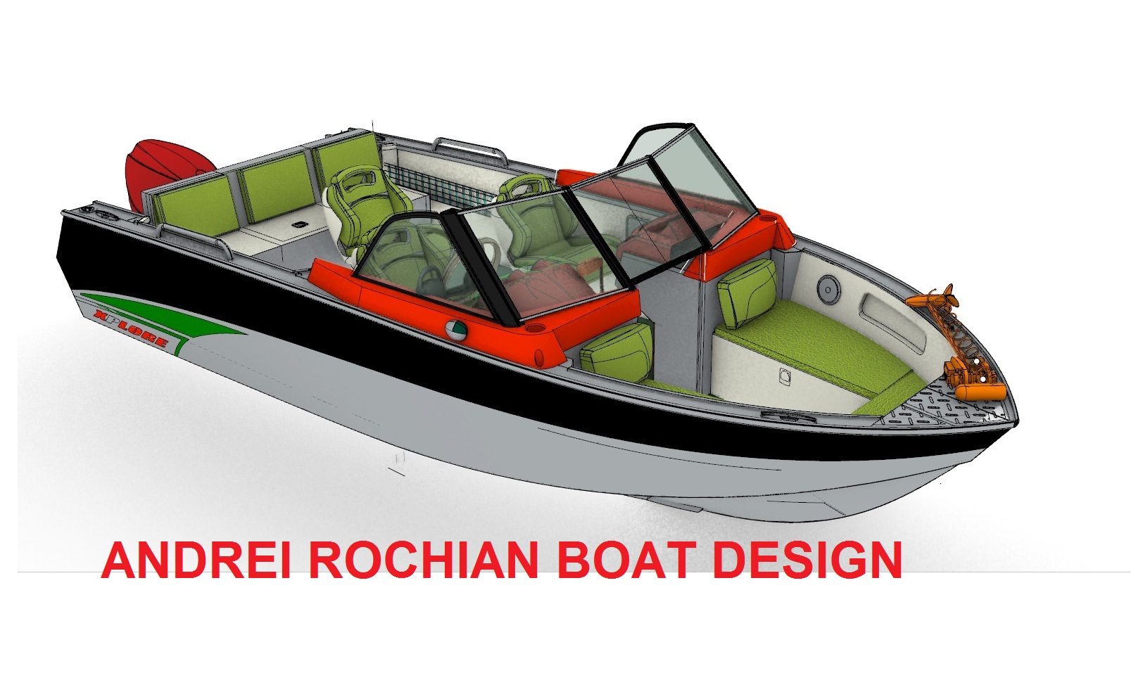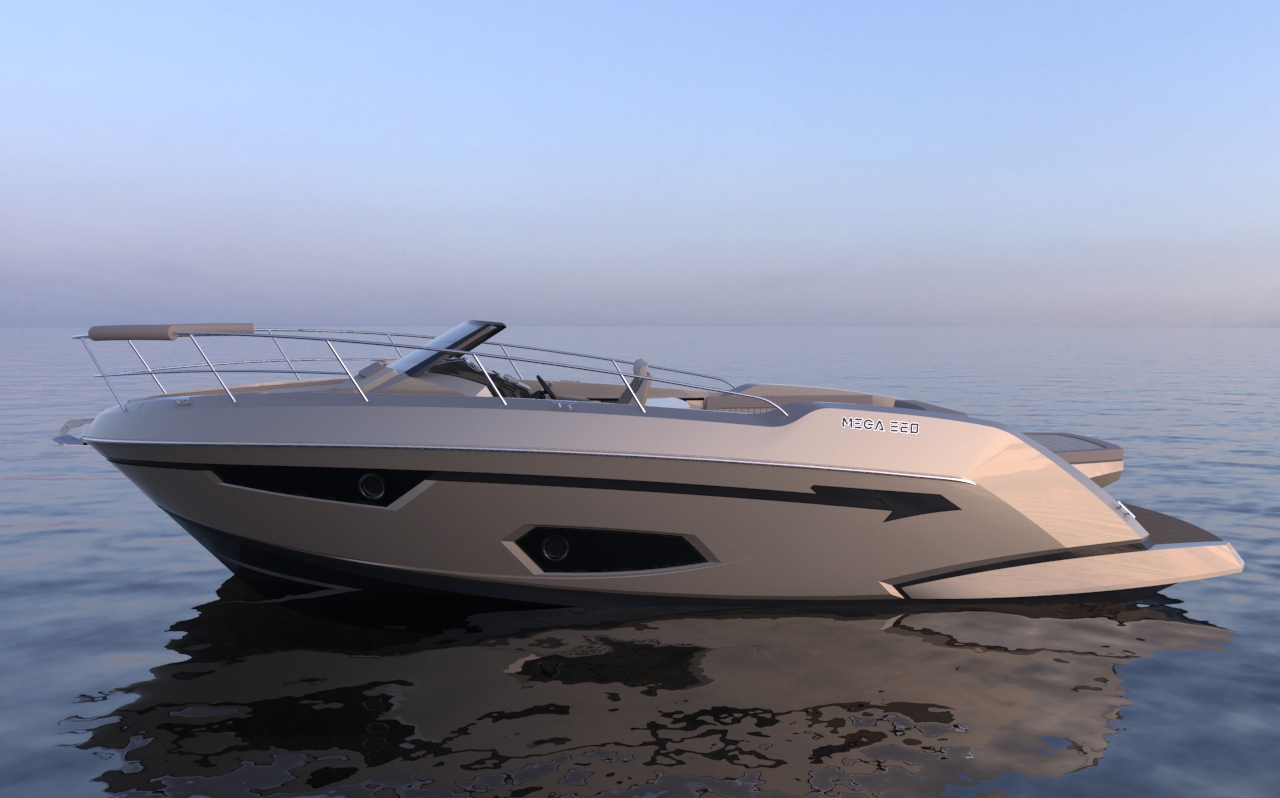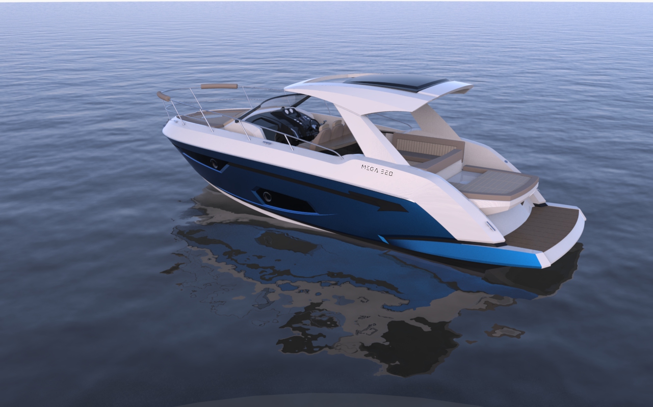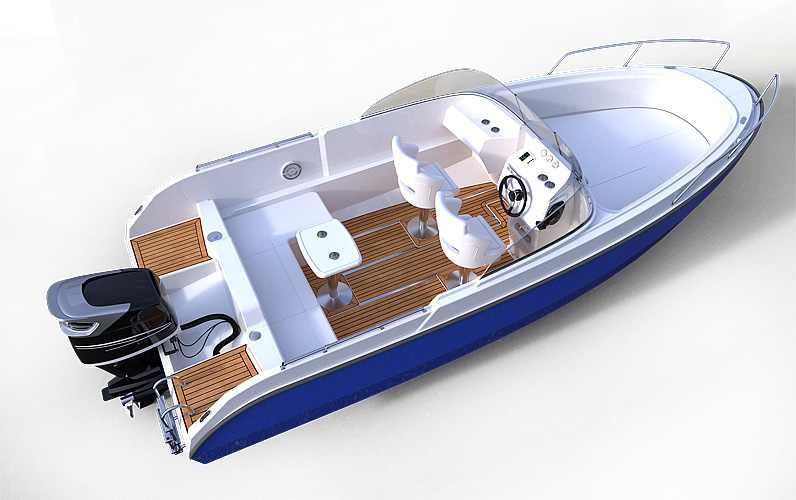 Looks cool, especially the hull and boarding walk through transom. What kind of power plant and power are you thinking of? -