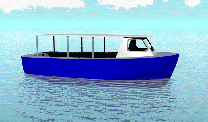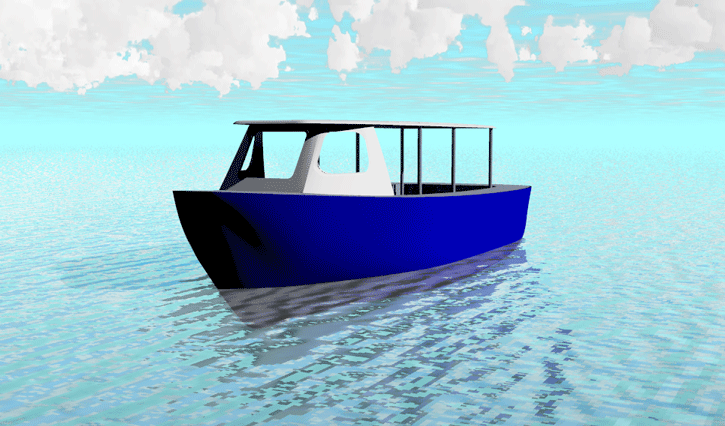 Looks cool, especially the hull and boarding walk through transom. What kind of power plant and power are you thinking of?