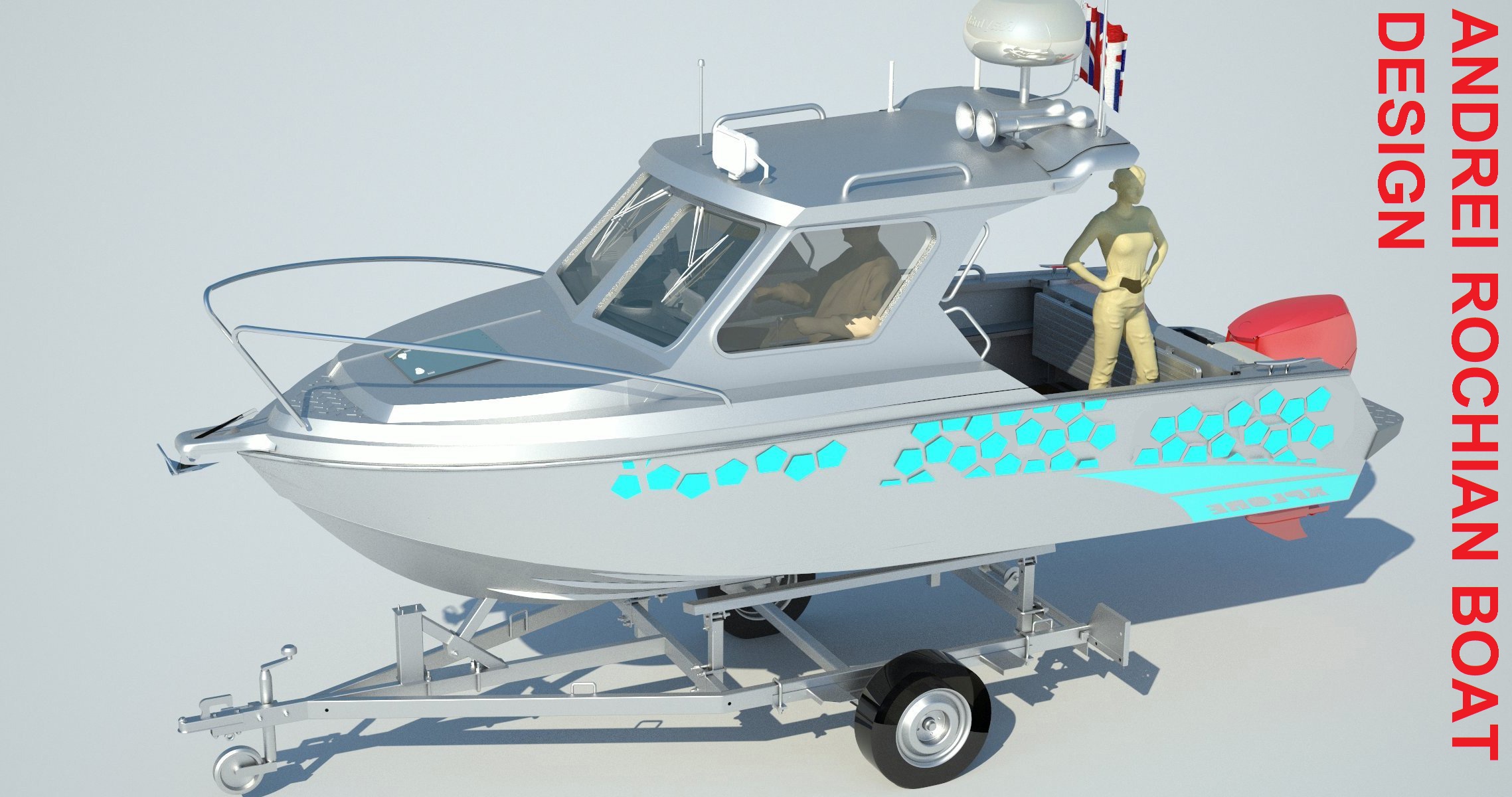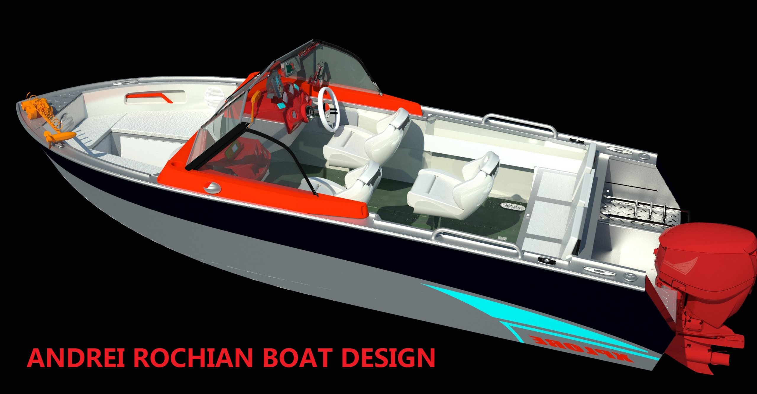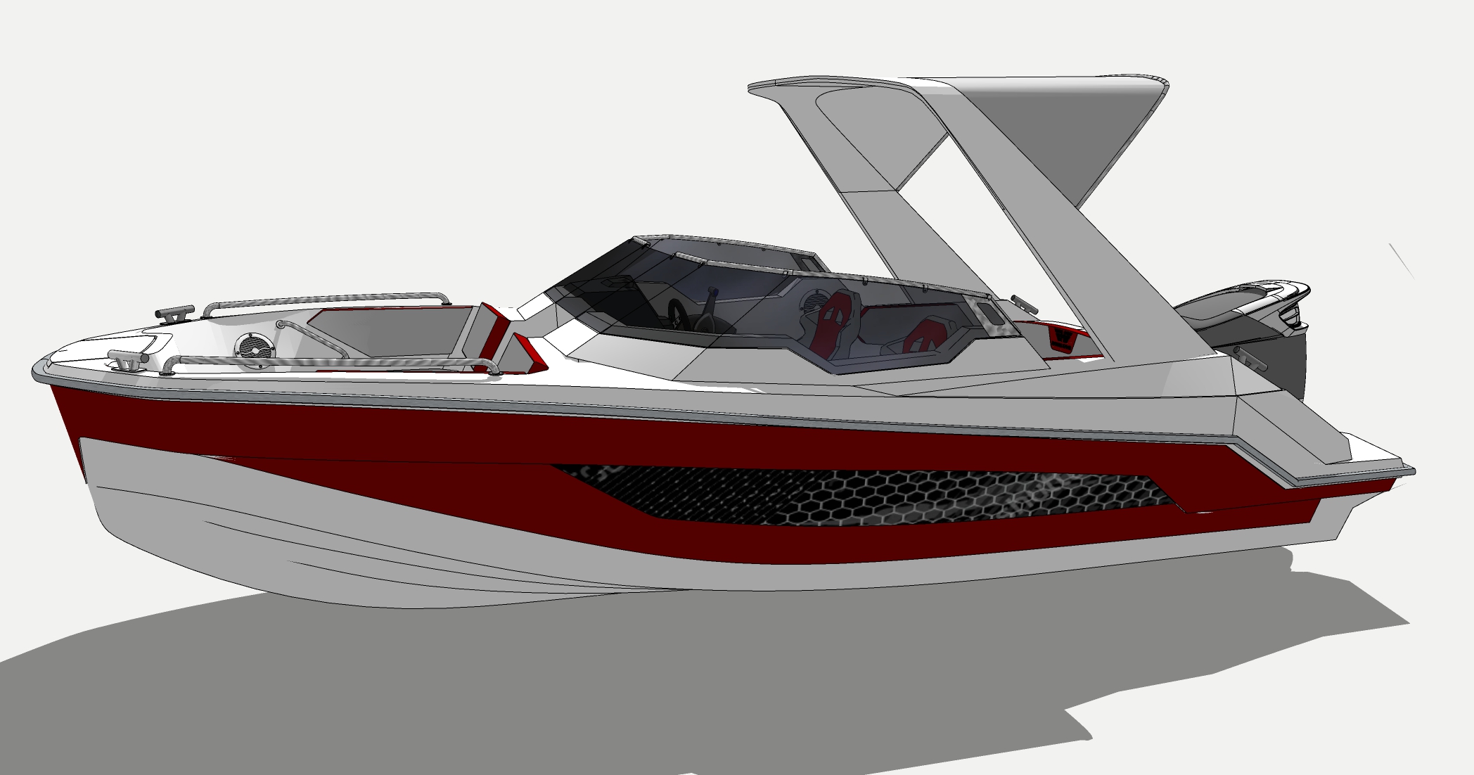 Looks cool, especially the hull and boarding walk through transom. What kind of power plant and power are you thinking of?