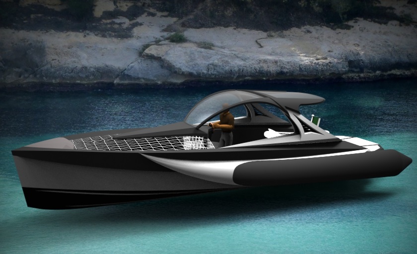 Looks cool, especially the hull and boarding walk through transom. What kind of power plant and power are you thinking of?