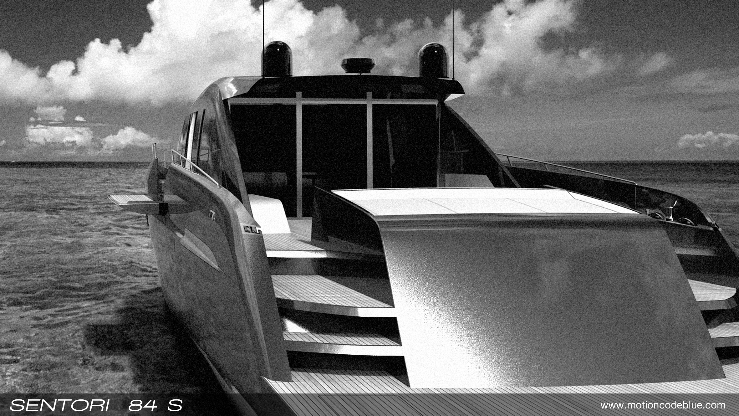 SENTORI 84 S is a 84 feet open motor yacht whith a length of 25.6 meters, a beam of 6.5 meters and a displacement of 54 tons.