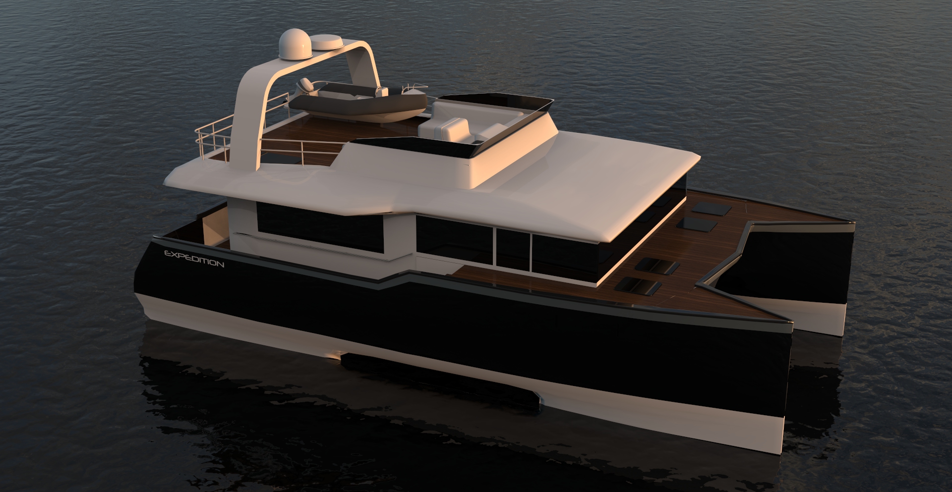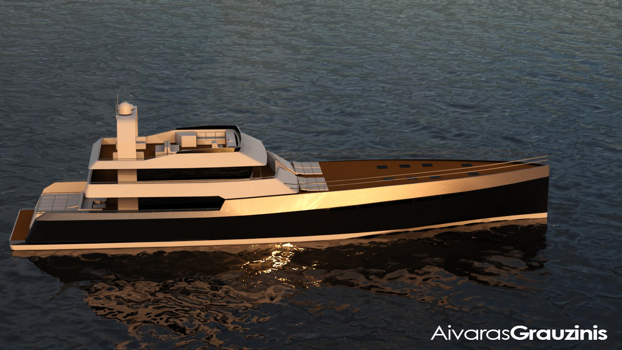 Looks cool, especially the hull and boarding walk through transom. What kind of power plant and power are you thinking of?