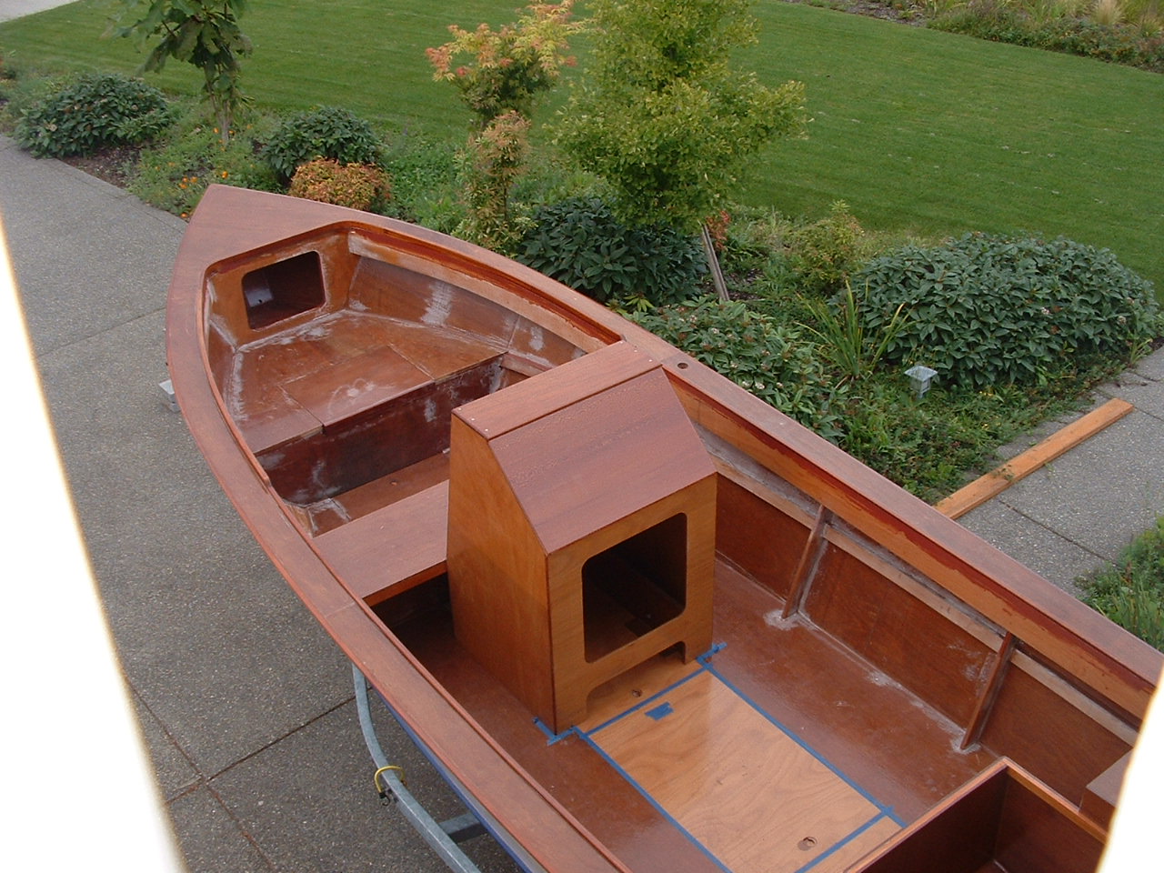Looks cool, especially the hull and boarding walk through transom. What kind of power plant and power are you thinking of?