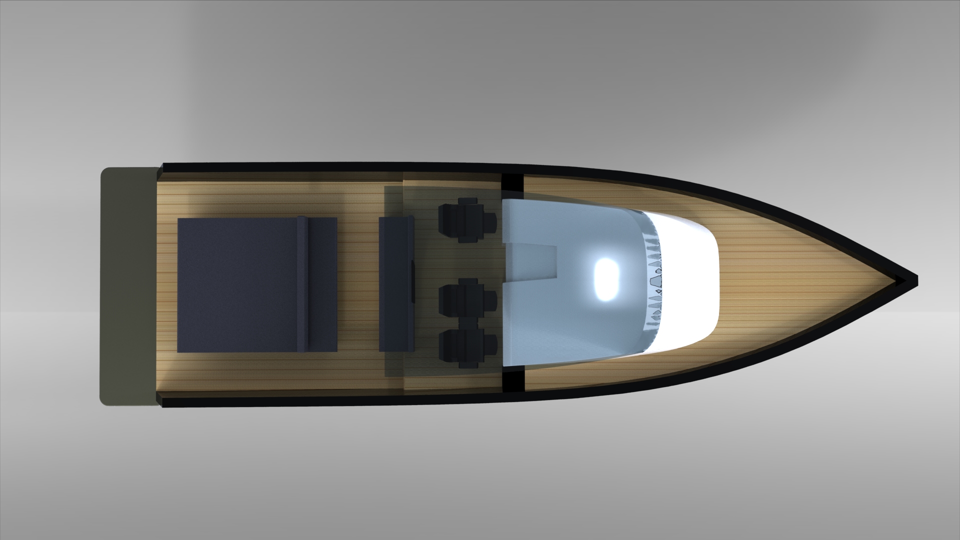 Looks cool, especially the hull and boarding walk through transom. What kind of power plant and power are you thinking of?