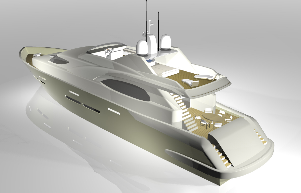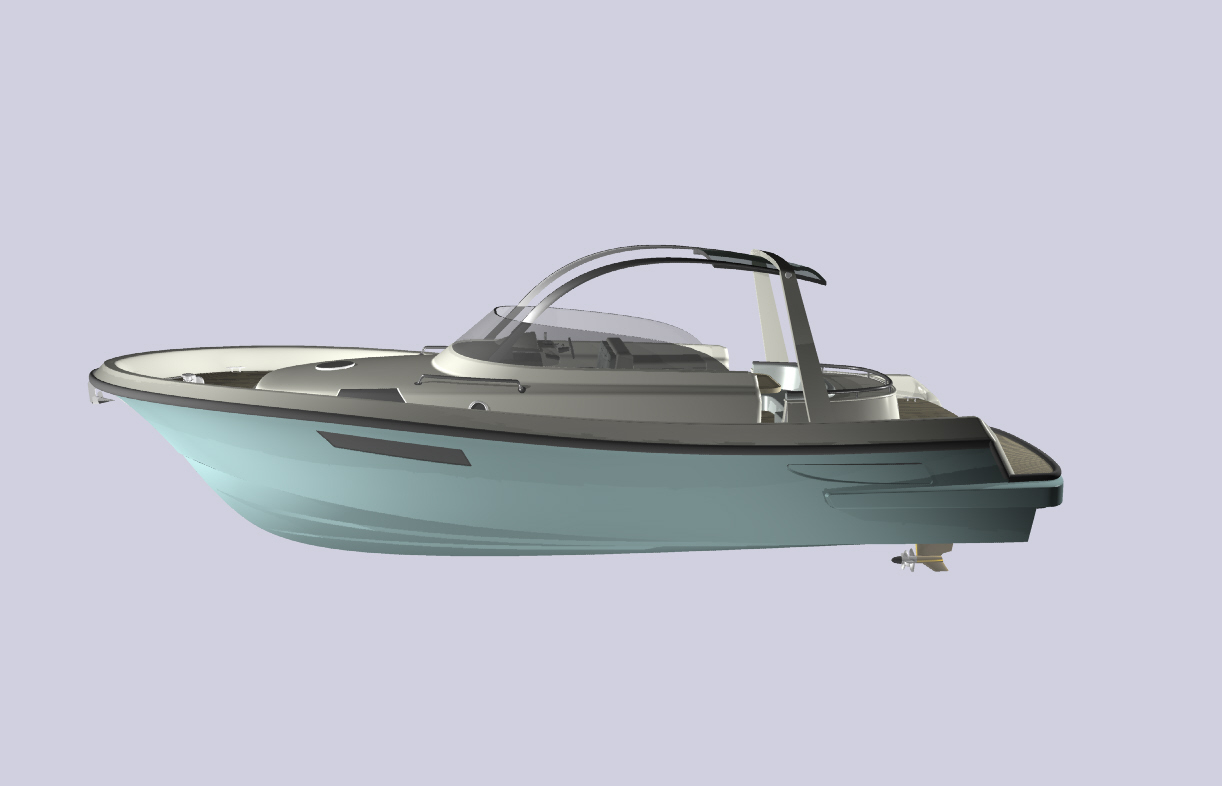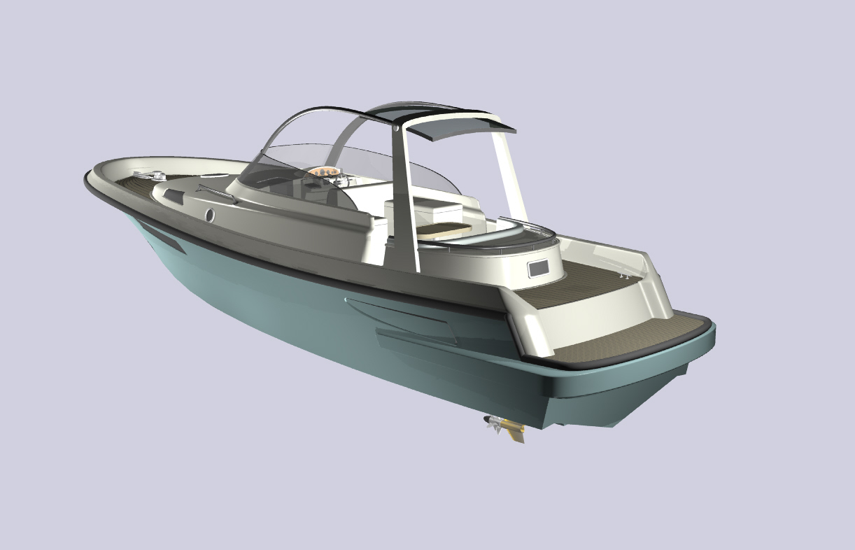 Looks cool, especially the hull and boarding walk through transom. What kind of power plant and power are you thinking of?