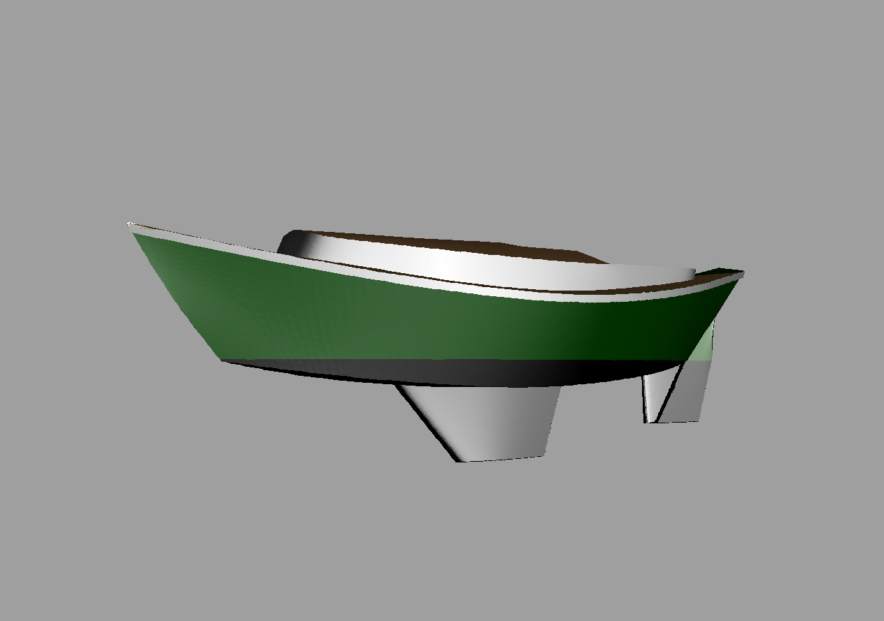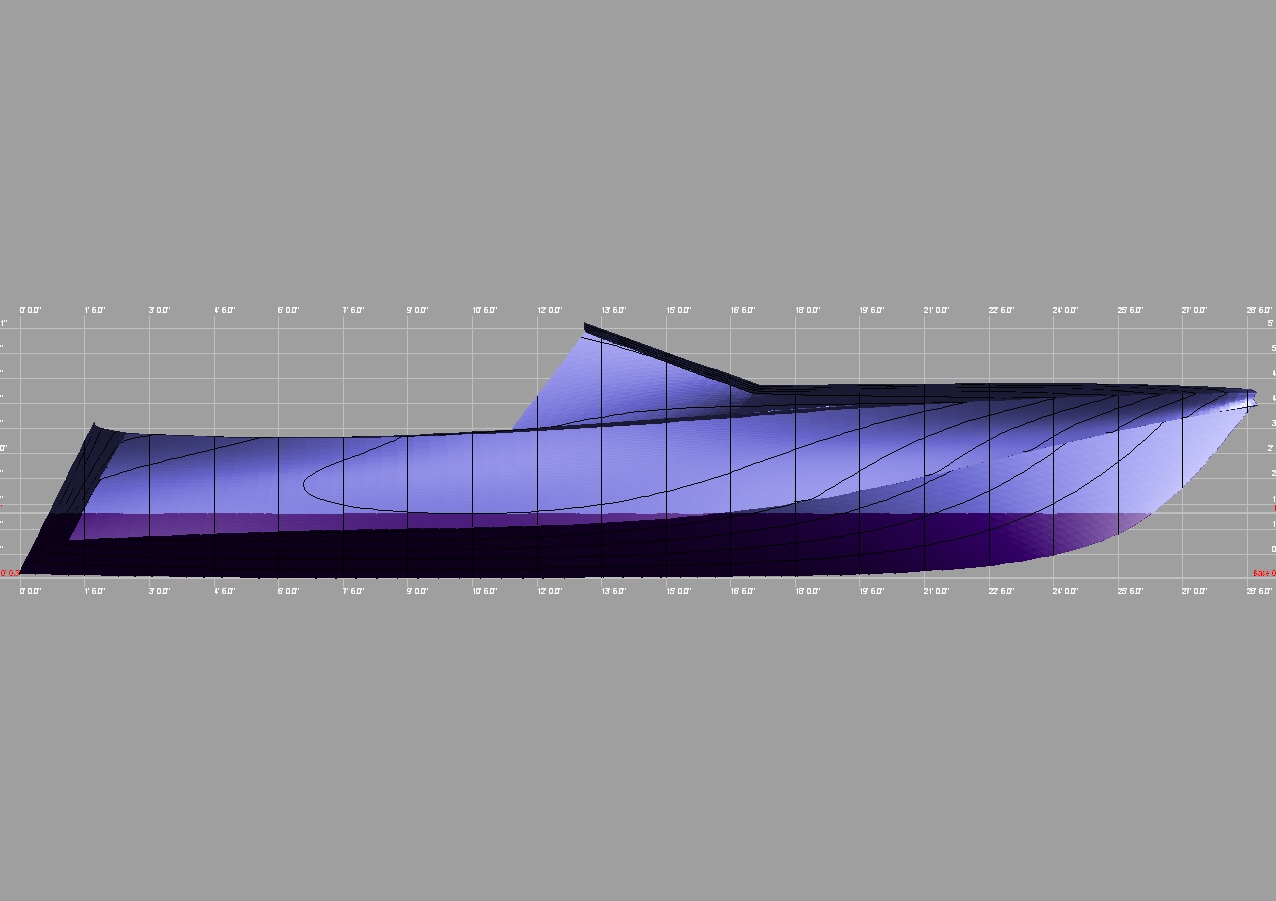 Looks cool, especially the hull and boarding walk through transom. What kind of power plant and power are you thinking of?