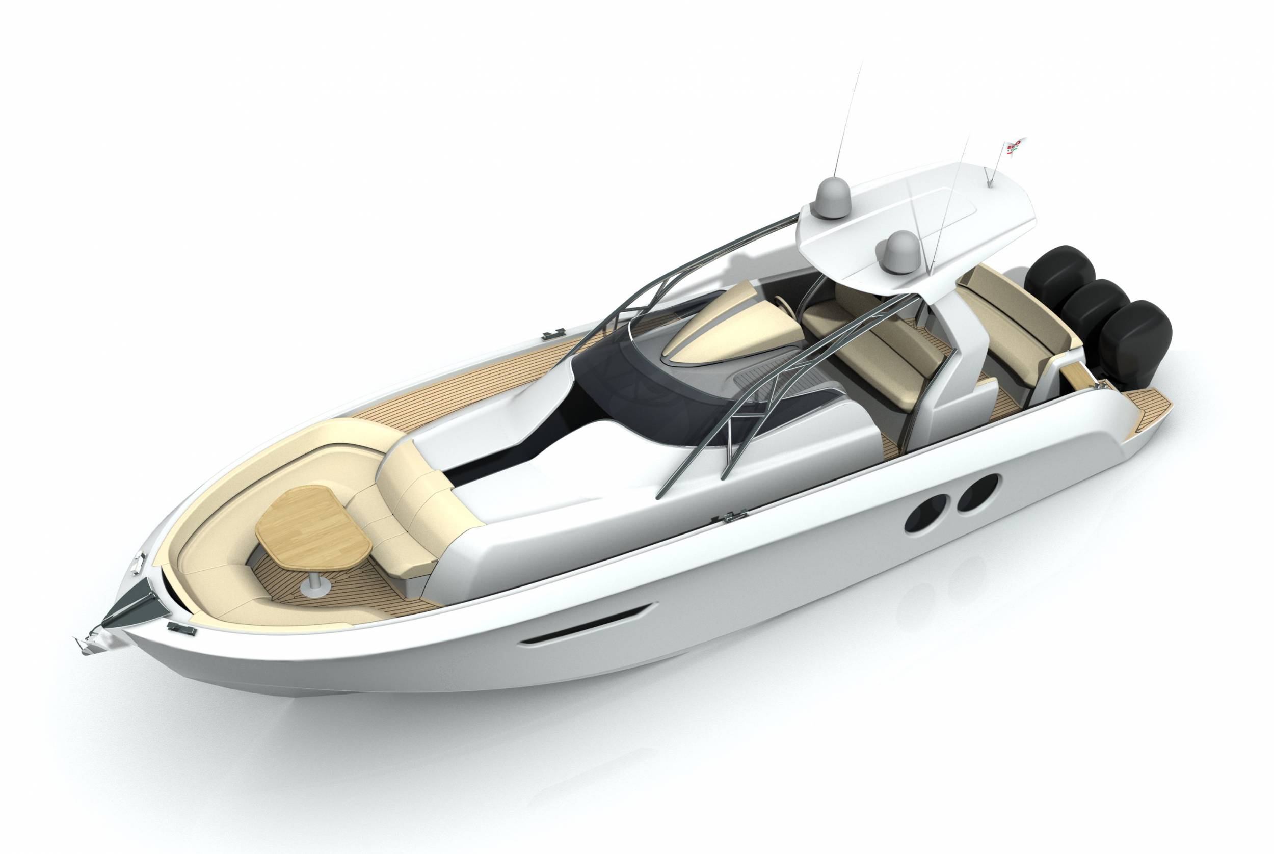 Looks cool, especially the hull and boarding walk through transom. What kind of power plant and power are you thinking of?