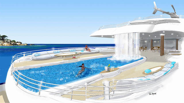 Looks cool, especially the hull and boarding walk through transom. What kind of power plant and power are you thinking of?