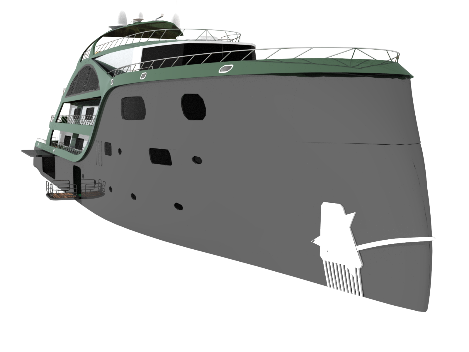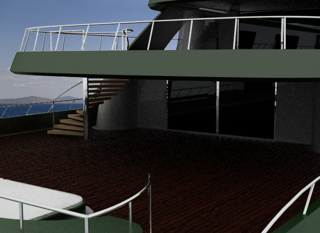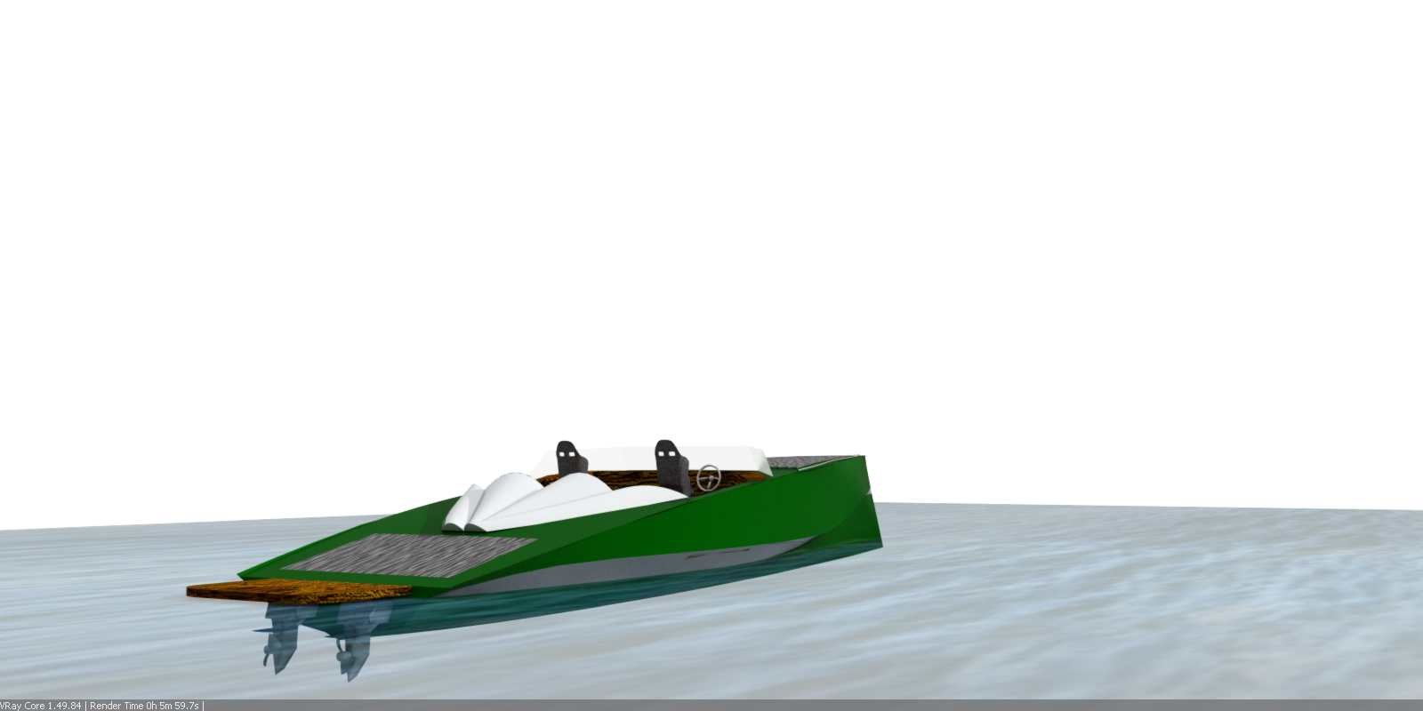 Looks cool, especially the hull and boarding walk through transom. What kind of power plant and power are you thinking of?