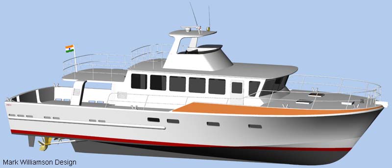 Looks cool, especially the hull and boarding walk through transom. What kind of power plant and power are you thinking of? -