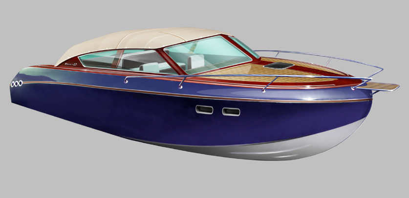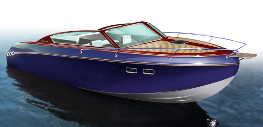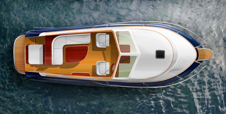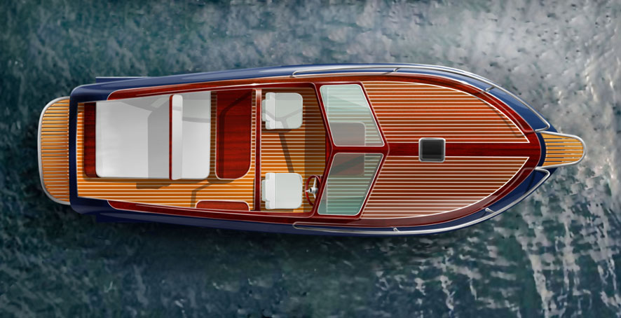 Looks cool, especially the hull and boarding walk through transom. What kind of power plant and power are you thinking of?