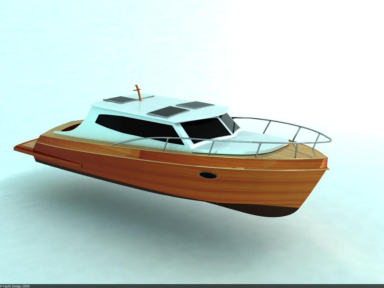 Looks cool, especially the hull and boarding walk through transom. What kind of power plant and power are you thinking of?