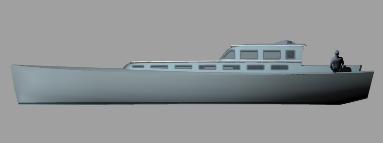 Looks cool, especially the hull and boarding walk through transom. What kind of power plant and power are you thinking of?