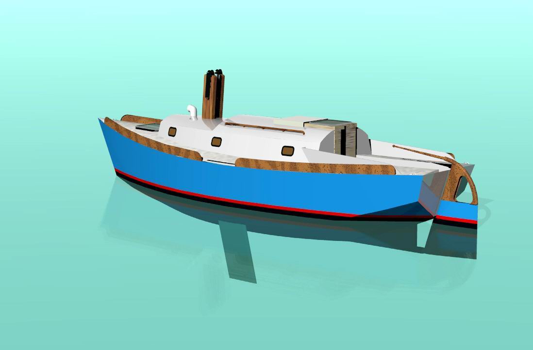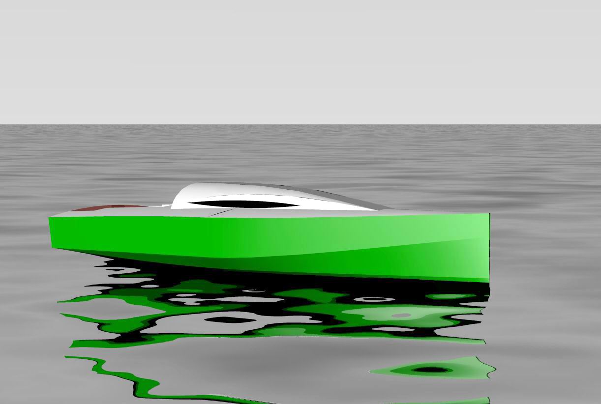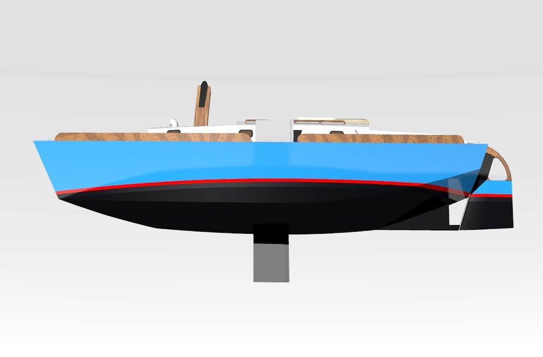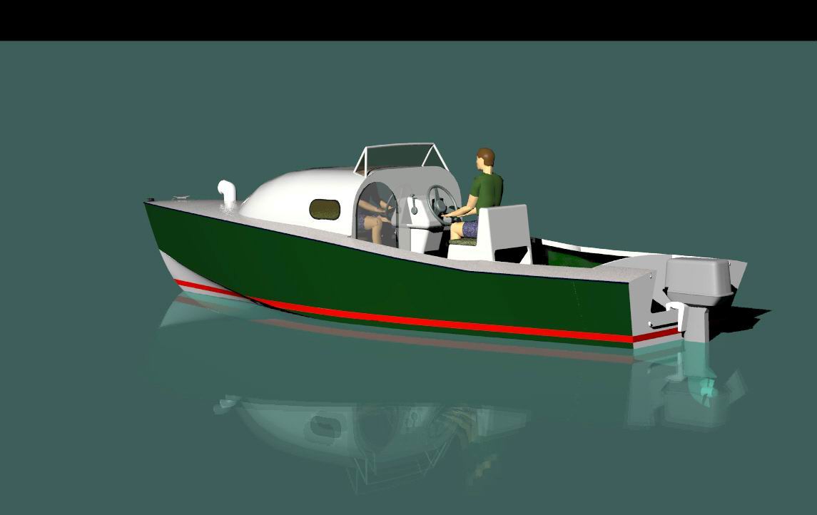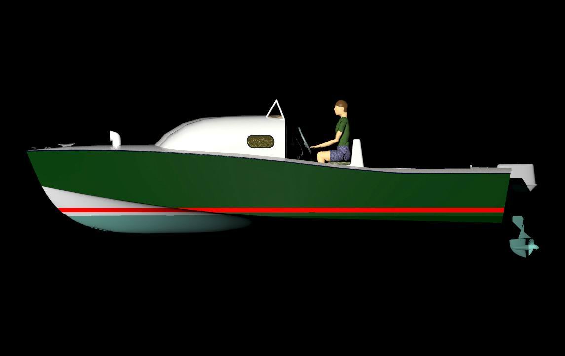 Looks cool, especially the hull and boarding walk through transom. What kind of power plant and power are you thinking of? -